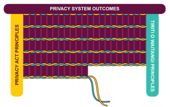 Tuitui kākahu, tuitui tāngata represents how the principles of Te Tiriti o Waitangi and the Act work together to achieve the outcomes of the privacy system.