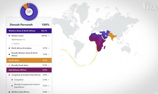 A report received from 23andMe by Vox journalist Danush Parvaneh outlining the broad categories of his genetic background. Source: Vox YouTube Channel